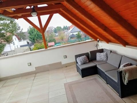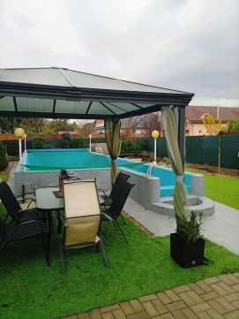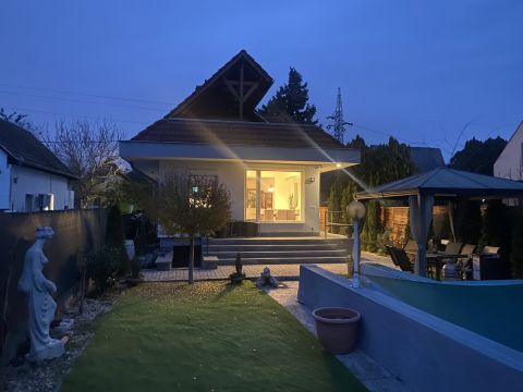 Családias életérzés jellemzi, kiemelve a kényelmi szempontokat, így találhatunk benne egy kiválóan megtervezett medencét, ami az otthon különleges adottsága. A ház kialakítása során kiemelt figyelmet fordítottak a minőségi anyagok használatára és a praktikus elrendezésre. Az emeleti terasz körülbelül 6 évvel ezelőtt egy fél tetőt kapott, ami még vonzóbbá teszi az ingatlant a külső tér használat szempontjából minden évszakban.