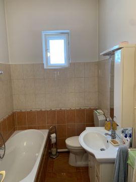2015-ben a fürdőszoba és a konyha teljes felújításon esett át, beleértve a víz- és csatornavezetékek cseréjét is. A hideg burkolatok megújultak a helyiségekben, a szobákban az eredeti parketta maradt. A fürdőben kád és mosógép kiállás van, a WC egy helyiségben található.