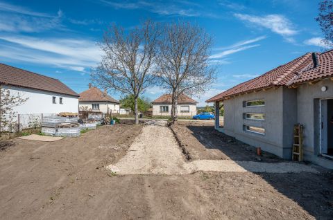 A kert már most élhető: két nagy diófa és több gyümölcsfa (alma, cseresznye), készülő kerítés és térkövezés minden adott ahhoz, hogy rövid időn belül egy rendezett, igényes otthonod legyen.