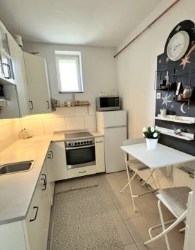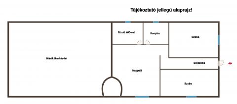 A belső elrendezés praktikus: két szoba, nappali, konyha, fürdőszoba WC-vel és előszoba áll rendelkezésre. Az épület két éve szigetelést kapott, a tetőtér pedig igény szerint tovább bővíthető.
