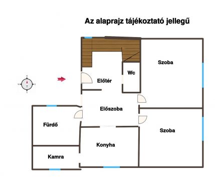 Szobákban laminált padló, egyéb helyiségekben járólap