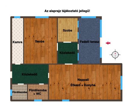 - a meleget padlófűtés biztosítja, minden szobában külön termosztáttal