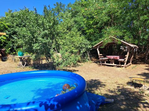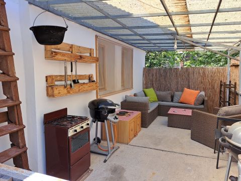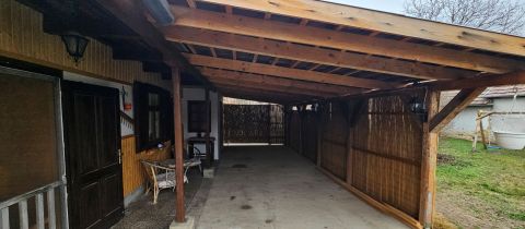A telek egyik fontos előnye a két autó számára kialakított fedett kocsibeálló, így a járművek védve vannak a napsütéstől és az időjárás viszontagságaitól.