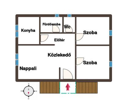 -nappali, 2 különnyíló szoba, előtér, közlekedő, konyha-étkező, Fürdő, Wc külön helyiségben