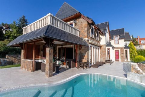 Teljes luxus és maximálisan igényes kivitelezés, 975 m2-es parkosított telken. A villa remek állapotú, jól átgondolt tervezésű, rendszeresen karbantartott és impozáns terekkel rendelkezik.