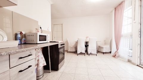 Tehát 2 nappali-konyha-étkező, 2 szoba, 2 fürdőszoba a teljes ingatlan, ami 2 generáció együtt és mégis különélésére is lehetőséget ad, mindez egy földszinti 35 m2 lakóterület + 13 m2 terasz és egy alagsori 31,5 m2 lakóterület + 5 m2 fedett terasz alapterülettel).
