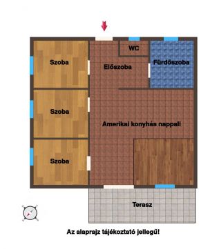 A lakás 78 m² alapterületű, amerikai konyhás nappalival és három szobával, továbbá egy, a privát szférát biztosító, lemezfedéssel ellátott terasszal rendelkezik. A beépített szekrényekkel felszerelt előtérből elérhető egy kádas fürdőszoba illemhellyel, valamint egy további illemhely is. A szobák 8,1, 8,1 és 8,9 m² alapterületűek.