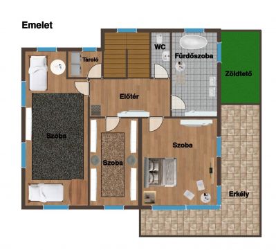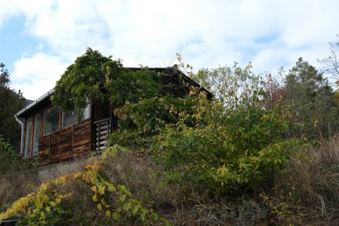 Telek felső részén: pincés faház + rézsűs, vadvirágos terület sziklakert, japánkert, sütögetőhely vagy akár kültéri szauna kialakítása