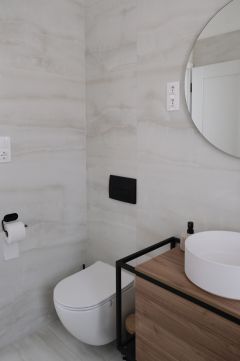 2 fürdőszoba + két külön WC (Strohm Teka szaniterek + öntött márvány zuhanyzó/olasz Marmy öntött márvány, szabadon álló kád és mosdók)
