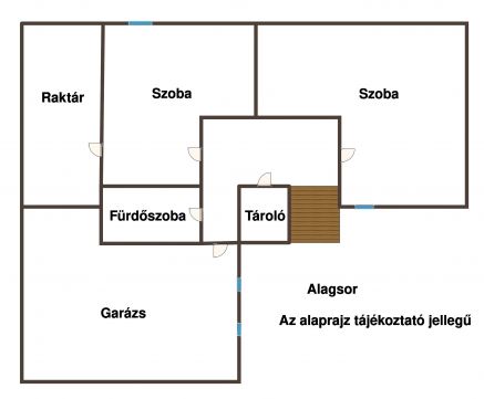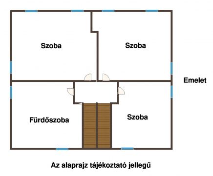 Emelet: 3 különnyíló hálószoba, fürdőszoba