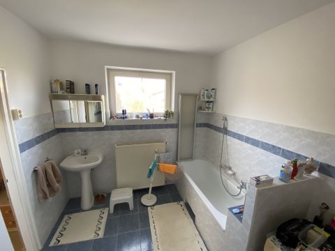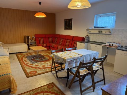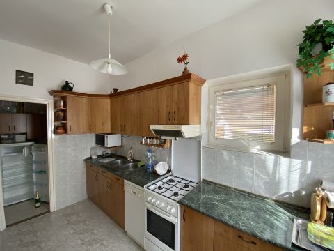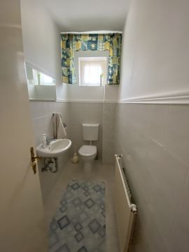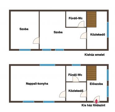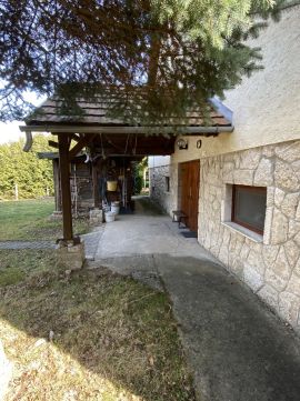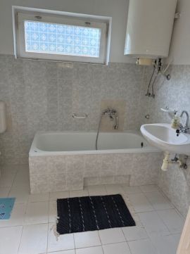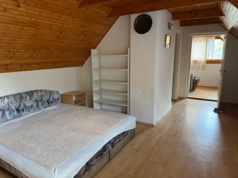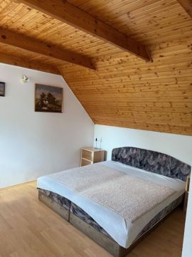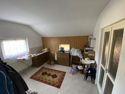 Felső szint : használhatunk egy előteret, két szobát., fürdőt WC-vel... Fűtését cserépkályha és elektromos panel adja, minden közmű rendelkezésre áll.
