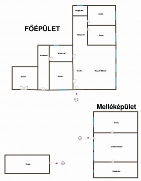 - Konyha, nappali, hálószoba, fürdőszoba, WC