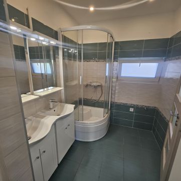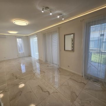 * Földszint: Tágas, világos nappali stukkós LED világítással. Egyedileg kialakított, hatalmas hálószoba (kb. 8 m²-es dolgozó/külön szoba kialakítható belőle), teraszajtóval. Kádas/zuhanytálcás fürdőszoba dupla mosdóval és mosógép kiállással. Külön WC kézmosóval. Beépített, tükrös szekrények az előszobában és a hálóban.