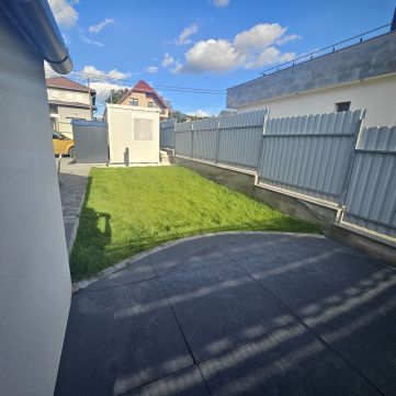 A füvesített kert telepített gyepszőnyeggel és automata öntözőrendszerrel van ellátva.