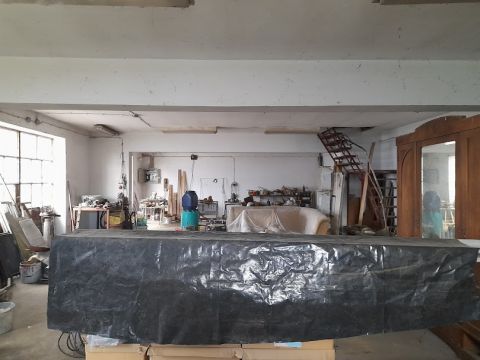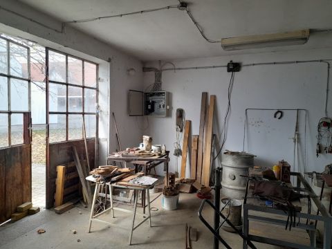 A főépület mellett egy tégla szerkezetű szintén 131 nm-es műhely kapott helyet. A műhely jelenleg egybe nyitott de kialakítása nyílászárói lehetővé teszi a műhely akár hármas tagolását is. A műhelyben szerelőakna, külön villanyóra és  háromfázis is kiépítésre került. A műhely számtalan lehetőséget tartogat az ingatlan új tulajdonosa számára legyen az hobby vagy megélhetési tevékenység.