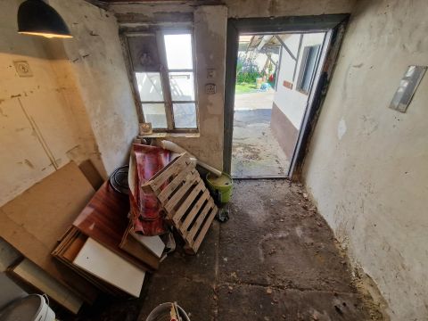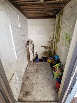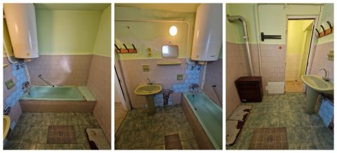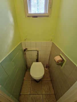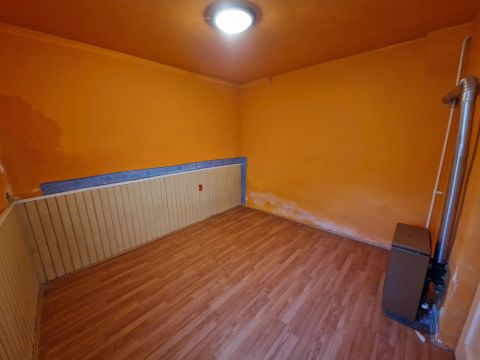 Későn észrevett (nem lakott az ingatlan) cserép és tető hiba miatt a kisebb szoba falain beázás látható, melynek okát szakemberek már kijavították, a fal azóta szárad!
