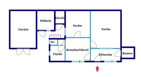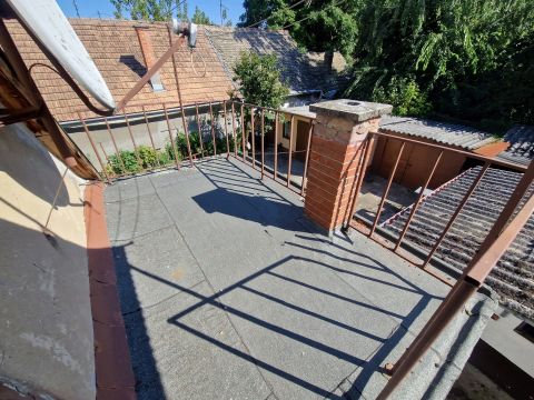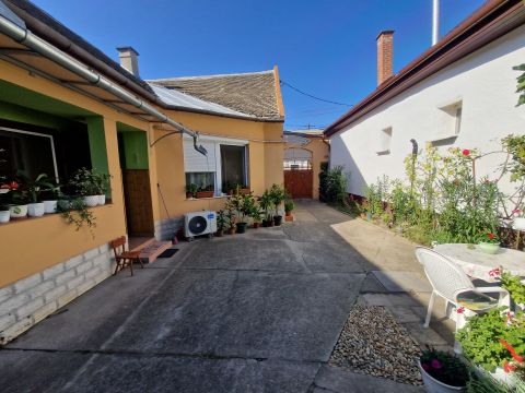 Baja belvárosában eladó 60 m2-es klimatizált udvari házrész garázzsal, műhellyel, tárolóval, tetőtér beépítési tervekkel.