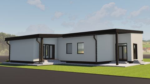 Görcsönyben eladó 134 nm-es egy szintes lakótérrel rendelkező, tágas amerikai konyha-nappali+ 3 szoba elosztású, hőszivattyús rendszerrel (padlófűtéssel) fűtött, klímás, új építésű tégla ház, 2 terasszal, 995 nm-es telken.