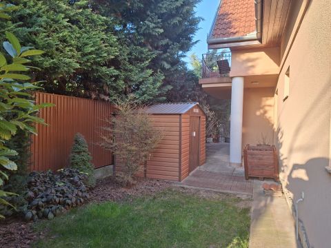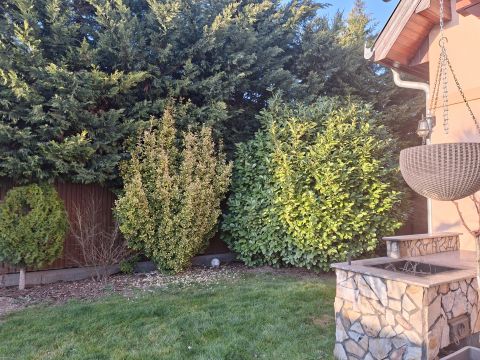 Az udvaron lévő úszómedence, gyönyörű növényzet és sütögető a nyári otthoni kikapcsolódást teszi pihentetővé hangulatossá.