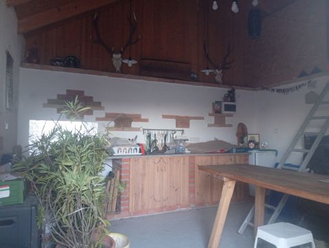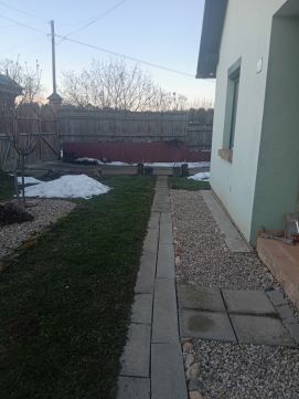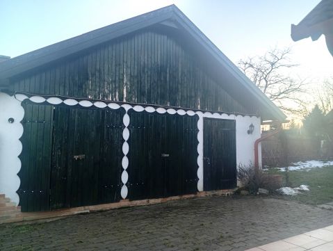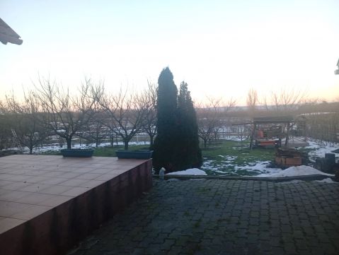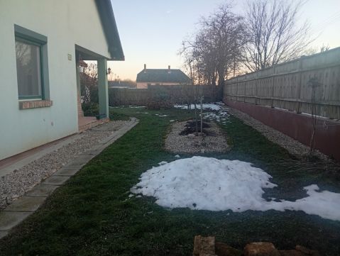 A telek mérete 1439 nm, melyen dupla garázs, valamint egy nyári konyha található betonozott pincével és kemencével.