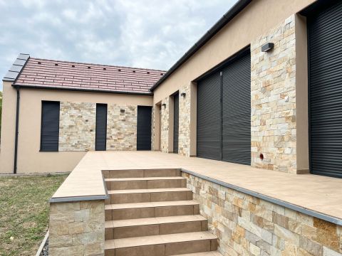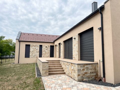 A 137 nm-es, egyszintes, élhető méretű ingatlanban tágas, nagy belmagassággal rendelkező amerikai-nappali és 3 háló került kialakításra. Fentieken kívül 2 fürdőszoba, kamra és háztartási helyiség is helyett kapott udvari beállója és hatalmas terasza mellett.