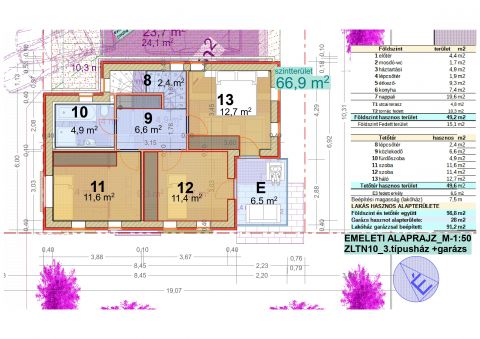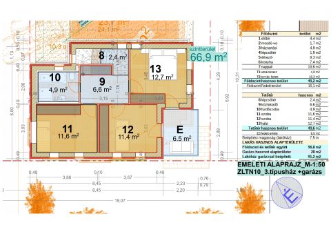 Az emelet három kényelmes méretű szobát kínál, melyekhez egy modern fürdőszoba tartozik WC-vel együtt. A szobákban több beépített szekrény kialakítására is lehetőség van. Ezen a szinten található egy 6,5 m²-es erkély, amely az egyik szobából közelíthető meg, kellemes kilátást és privát szabadtéri pihenőteret biztosítva.