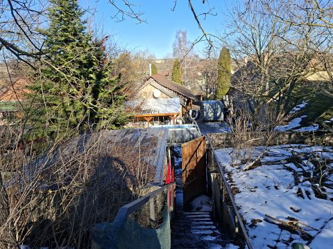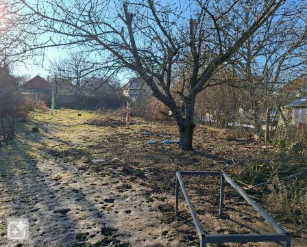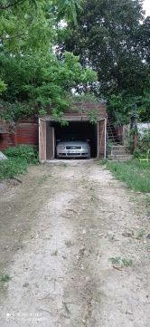 A házhoz garázs és tágas udvar tartozik. A telek hátsó részén egy nagy veteményes található, előtte pedig egy tyúkok tartására kialakított udvarrész.