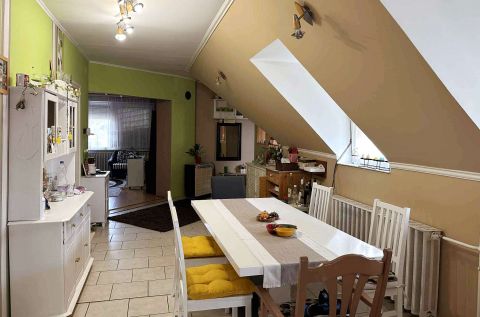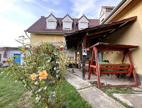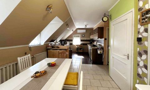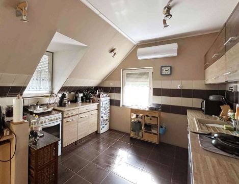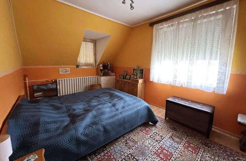 Az 1220 m2-es telken elhelyezkedő vegyes falazatú házban belső lépcsőházból tudjuk külön-külön megközelíteni a földszintet és a tetőteret. Az alsó szintnek van egy külön bejárata az udvar felől is, így a két szint szükség esetén teljesen leválasztható egymástól.
