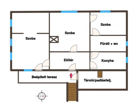 - helyiségei: 3 szoba, előtér, konyha, fürdő + wc,
