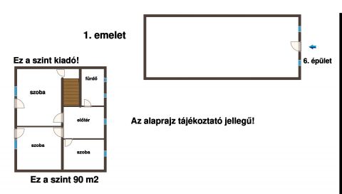 2. szint beépített, bútorozatlan, tökéletes lehet tárolásra. Ez a szint 90 nm