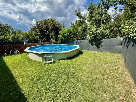 Kis, rendezett saját kert, benne egy 4,5 méter átmérőjű fémpalástos medencével tökéletes a nyári napokra!