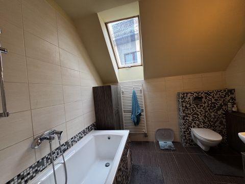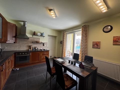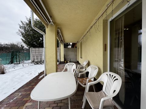 Hat szobás, jó állapotú, szigetelt, két szintes, alakítható, dupla komfortos ikerház terasszal és erkéllyel, 250 négyzetméteres gondozott kerttel, autó beállóval!