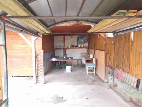 A házhoz 320m2 saját, körbekerített telek tartozik, a ház előtti rész betonozott, hangulatos teraszként, pihenőhelyként remekül hasznosítható. A kert további része jelenleg veteményesként van használva. A ház mellett a már említett nyári konyha, egy további, kb. 20m2-es tárolóépület, és egy fedett gépkocsibeálló felépítmények találhatóak még a területen. Gépkocsibeállás a fedett beállón felül is, további 2-3 autó számára megoldott.