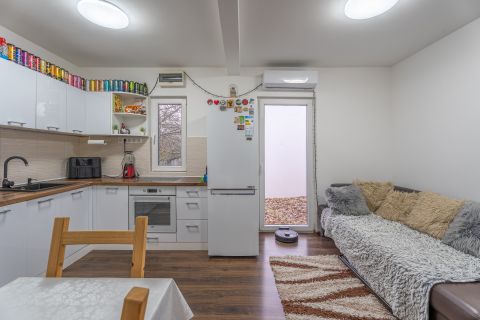 A földszintes ingatlan nettó 40 m², jól kihasználható elrendezéssel: nappali + 2 szoba.