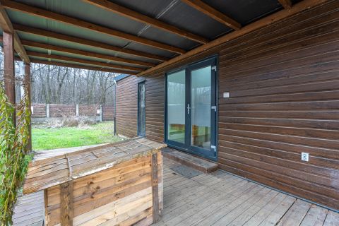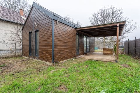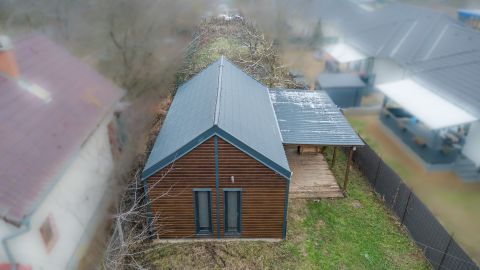 Csendes, rendezett környezetben kínálom eladásra ezt a 2020-ban épült, újszerű állapotú, könnyűszerkezetes családi házat, 15 cm homlokzati és 15 cm födém szigeteléssel.