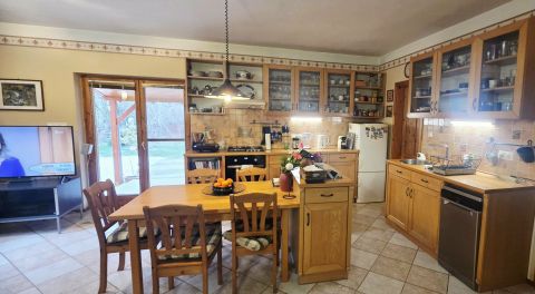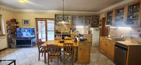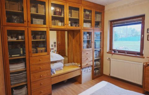 A ház igényes burkolatokkal, egyedi fa beépített bútorokkal és hangulatos kandallóval rendelkezik, amely otthonos légkört teremt. A redőnyök, valamint a klíma a mindennapi komfortot szolgálják.