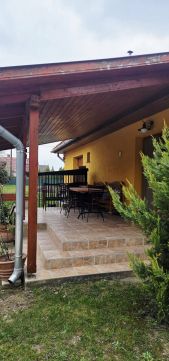 A ház egyik különleges ékköve a hatalmas, hangulatos terasz, amely tökéletes helyszíne lehet családi összejöveteleknek vagy pihentető délutánoknak.