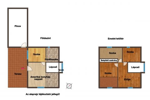 Épület: 30 m² alapterületű, kétszintes téglaépítésű ház (B30)