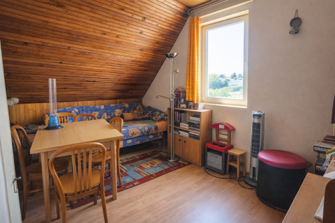 Hálószoba (valódi fa parkettával, látszó fa födémmel)