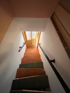 Lépcsőn jutunk le a szuterénbe, ahol további 2 szoba, fürdőszoba és tárolók találhatók.