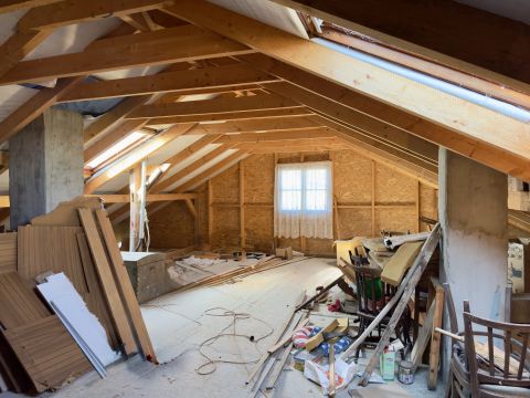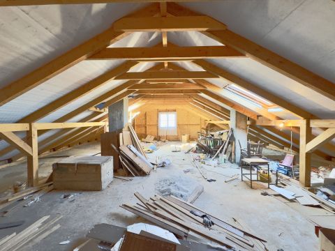 A tetőtér beépíthető, amely a jövőben további lakóteret biztosíthat. Az oldalsó ablak és a tetőablakok már kialakításra kerültek.