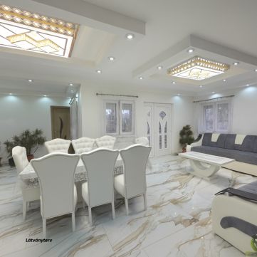 A főépületben jelenleg nincs használatban konyha, azonban a teljes kiállásrendszer már előkészítésre került a falban, így az új tulajdonosnak mindössze egy konyhabútort kell beépítenie, amennyiben a konyhát a főépületben szeretné kialakítani. A nappaliban, az előtérben, a közlekedőben és a melléképület konyhájában süllyesztett, több színben állítható LED-lámpasor került kiépítésre, amely modern megjelenést és hangulatos, egyedileg szabályozható világítást biztosít. A ház friss, fehér tisztasági festéssel kerül átadásra, így az új tulajdonos azonnal költözhet, vagy könnyedén saját stílusára formálhatja a belső tereket.