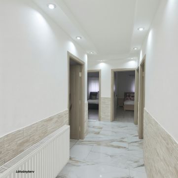 - Nyílászárók: Mindenhol 5 légkamrás, 3 rétegű, fehér műanyag nyílászárók kerültek beépítésre, redőnnyel felszereltek