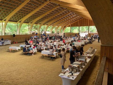 - lovasbemutatókra és rendezvények lebonyolítására épült 40 x 20-as pálya, 250 fő részére fedett lelátóval, impozáns fedett lovarda, edzőpályával, kifutóval, 9 férőhelyes angol box-szal. A fedett lovarda alkalmas rendezvényekre is kb. 800-1.000 főre.