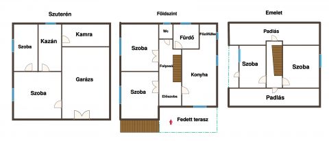 A ház alatt található 65 m²-es szuterén két szobával rendelkezik, amely külön lakrészként, tárolásra, hobbihelyiségnek vagy akár vállalkozási célra is jól használható.