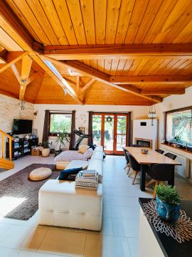 Eladásra kínálunk egy 2003-ban, Ytong építőelemből épült, fényviszonyait tekintve rendkívül kellemes, 124 nm-es, 4 szoba + amerikai konyhás nappalis családi házat. Az ingatlan fő vonzereje közé tartozik a vidéki környezet közelsége, kert, medence és a fedett terasz nyújtotta kényelem, a modern kialakítás és az alacsony rezsi. A ház hőkomfortjáról egyedülállóan 3 féle fűtési megoldás gondoskodik: a padlófűtés, az elektromos hőcserélők (hűtő-fűtő) és a kandalló biztosítják meleget az otthon minden pontján.