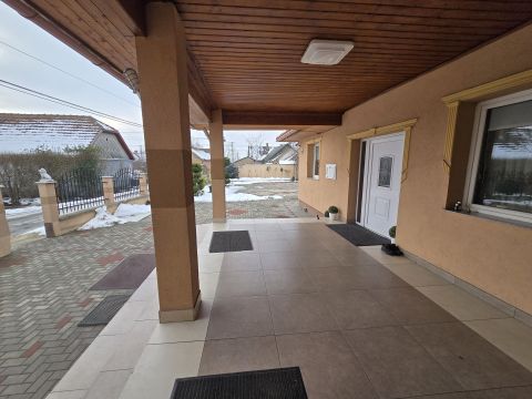Az udvaron egy fedett kocsibeálló biztosítja a járművek védelmét az időjárás viszontagságaitól, míg a kerti grillezésre kialakított helyszín tökéletes a baráti összejövetelekhez és családi eseményekhez. A térkövezett udvar nemcsak esztétikus, hanem rendkívül praktikus is, hiszen könnyen karbantartható és tisztán tartható.