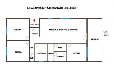 A ház elrendezése praktikus és modern: három szoba, amerikai konyhás nappali, fürdő WC-vel, zuhanyzó+WC, egy vendég WC, gardrób, háztartási helyiség és előszoba található benne. Az ingatlanhoz egy 18 nm-es térkővel burkolt terasz is tartozik, amely ideális hely a pihenésre és a szórakozásra.