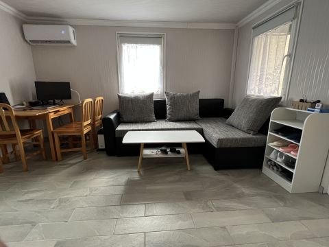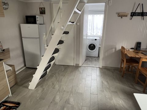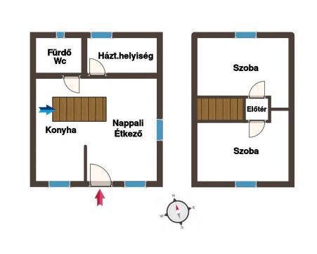 Lent a fürdő/wc, konyha, spájz/mosó konyha és egy nappali/étkező található.