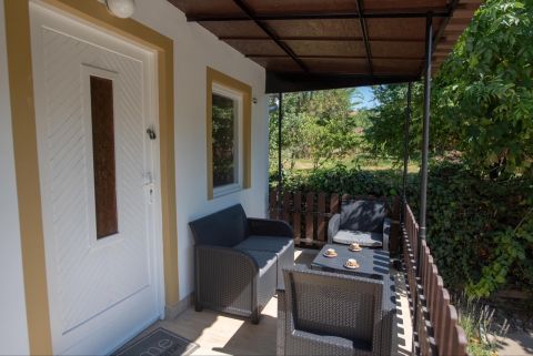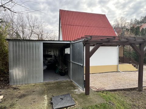 Az udvaron található egy garázs, egy lugas és egy szalonnasütő.